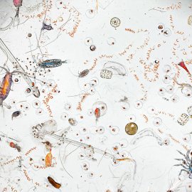 I’m Peter Neill, Director of the World Ocean Observatory. Recently via social media, the World Ocean Observatory received an astonishing photograph taken of a single drop of ocean water at 25 times magnification revealing the random inventory of life contained therein. The accompanying message lists the major identifiable species; what is so undeniably evident is the simplicity of these entities and the complexity of their metabolism and engagement in the larger process of the ocean as global accumulation of biomass and contribution to the health of the planet. What seems at first so understated and miniscule reveals on further consideration what is so amplified and essential about the ocean’s engagement with human life and survival. It is as if all the vast ocean is there alive in a single drop. What do we see? First, fish eggs are abundant, many types, suspended as potential contribution to the food chain either as immediate feed for other fish or as future feed for larger predators including possibly ourselves. There are also marine worms, very similar in appearance to land worms, multi-segmented polychetes with dozens of tiny hair-like appendages for motivation through the water. There are crab larvae, much more fully developed, a quarter of an inch long, delicate, transparent arthropods with visible internal organs, eight legs, pincered claws, and bug eyes with compound lenses so prominent as the crab matures. And there are Copepods, tiny shrimp-like crustaceans, common zooplankton that are the most basic source of protein for countless fish species. These animals are energetic swimmers with a well-developed nervous system that provides active motility to evade capture. But there is much more, microscopic organisms, in enormous number, like Diatoms, a single-celled type of algae, encased in a silica cell wall, or Chaetognaths, plankton with eyes and teeth and tiny spines that grapple with small plankton for feed, sometimes injecting a paralytic venom, or Cyanobacteria, coiled filaments among the most primitive life forms that use sunlight to produce sugar, that’s correct, you remember, photosynthesis, liberating oxygen into the atmosphere for us to breathe. Diatoms, Chaetognaths, Cyanobacteria – these are little guys with big ideas, part of a bigger system with even bigger consequences for us all. Relevant. Necessary. Vulnerable. But there is another aspect of the image that is equally impressive – its fantastic beauty, as if a collaboration between artist and scientist, whimsical abstraction mixed with observed illustration, Paul Klee and Charles Darwin, working on a canvas as big as life. And again, forgive me, another visual association also comes to mind-- those maps of the night sky wherein fish eggs are scattered like stars, worms like planets, larvae like constellations, plankton flowing like a milky way, copepods like shooting asteroids, bacteria like the astral light of distant galaxies, there but almost invisible to the eye. What do we feel when we confront the cosmos? What do we feel when we confront the ocean? Surely, we are humbled, made to feel, yes, almost microscopic in the vast fluidity of space and the sea. Surely, we are moved, by the beauty of it all, its inherent sense of time and space. Surely, we are awed by the infinite scale and apparency of dynamic change. Surely, we are restored by the truth of what we feel, an empathetic understanding of the value of this world we live in and of the obligation we have not to destroy it, poison it, deprive it of the many manifestations of vitality it all its forms. Surely, when faced with such a view, whether through a telescope, a microscope, or the naked eye, we know what we must do to enable life as we see it, in health and wellness of friends, family, community, nations, our world, indeed life in every drop. There is so much work to do. We will discuss these issues, and more, in future editions of World Ocean Radio.