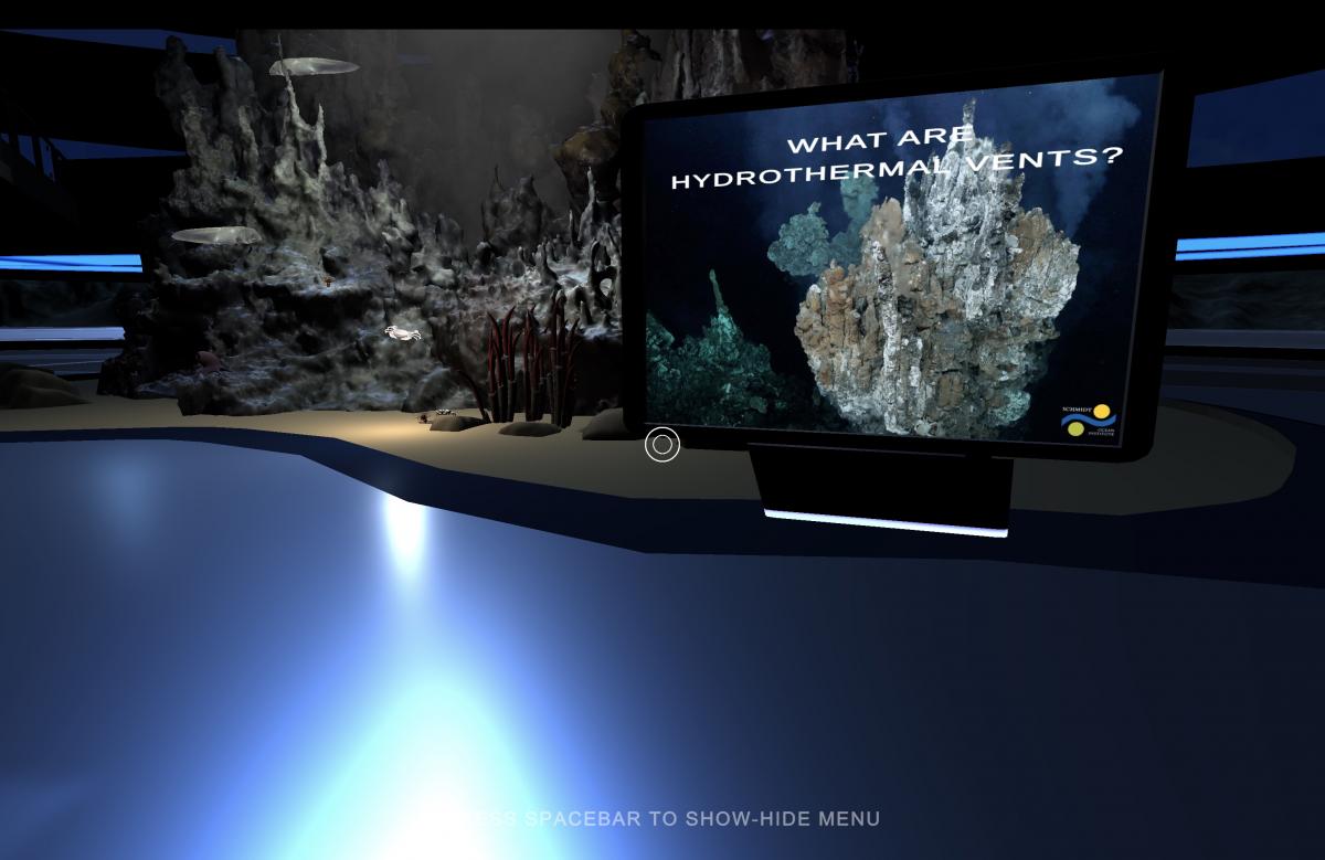 Deep Sea, developed in collaboration with Schmidt Ocean Institute and now available in four languages, is built using gaming technology to bring immersive experience to users everywhere. Displays include an immersive whale fall at 1,500 meters, an explorable hydrothermal vent, and drag-and-drop learning assessments for the 3D Deep Sea exhibit and explore a whale fall at 1,500 meters.